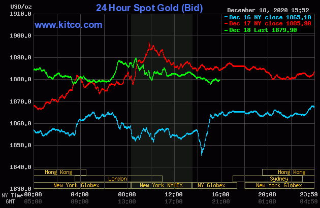 قیمت طلا تلاش کرد تا این هفته سطح مقاومت 1900 دلار در هر اونس را تحت‌فشار قرار دهد اما در پایان  روز جمعه به‌طور دقیق پایین‌تر از آن قرار گرفت. معاملات آتی طلای فوریه آخرین بار با 1888.70 دلار معامله شد که در هفته 2.5 درصد رشد داشت. در بازار نقدی نیز قیمت هر اونس طلا با کاهش ۶.۵ دلاری به ۱۸۷۹ دلار و ۹۰ سنت رسید.