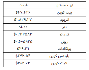 قیمت ارز های دیجیتالی شنبه ۲۵ بهمن