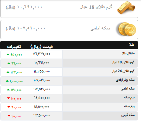 هر گرم طلای 18 عیار با رشد 9900 تومانی ، 1 میلیون و 69 هزار و 100 تومان در طلافروشی ها معامله شد. این در صورتی است که هر اونس طلا در بازارهای جهانی با رشد 11 دلار و 91 سنت، 1739 دلار و 53 سنت دادو ستد شد.