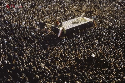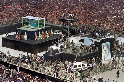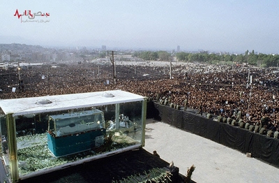 وداع با امام (ره) با حضور میلیون‌ها نفر از سوگوارانی که از شهر‌ها و روستا‌های مختلف آمده بودند برگزار شد و سراسر اتوبان و راه‌های منتهی به مصلی مملو از جمعیت سیاهپوش بود. پس از برگزاری نماز بر پیکر امام خمینی (ره) به امامت آیت الله العظمی گلپایگانی مردم فاصله ۲۰ کیلومتری مراسم تشییع تا بهشت زهرا (س) پیمودند.