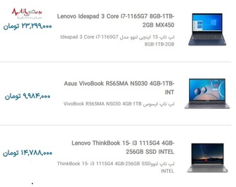قیمت روز لپ تاپ با بروزرسانی روزانه بر اساس آخرین تغییرات بازار تهران ۲ آذر ۱۴۰۰
