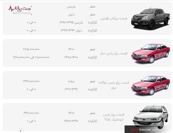 قیمت محصولات ایران خودرو مانند بسیاری دیگر از محصولات خودروسازان در ایران همواره در نوسان است. به خصوص در زمان ارائه پیش فروش و طرحهای ویژه توسط این شرکت، قیمت روز محصولات ایران خودرو به یکی از اخبار داغ هفتگی تبدیل میشود. در این آشفته بازار، افرادی که قصد استفاده از خودروهای داخلی به ویژه مدلهای کارکرده و دست دوم را دارند، باید از قیمت فعلا ایران خودرو مطلع باشند. آخرین لیست قیمت محصولات ایران خودرو را همیشه میتوانید در سایت نبض بازار مشاهده کنید.