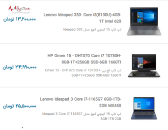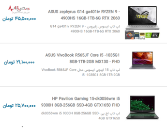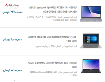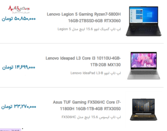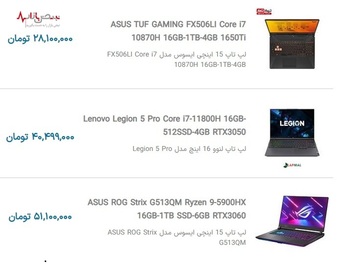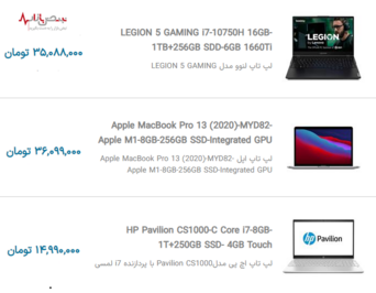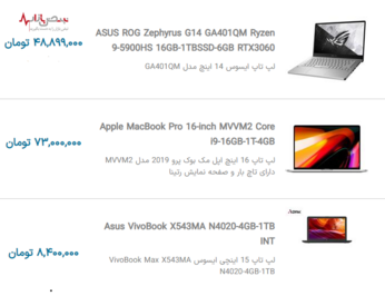 لیست قیمت به روز لپ تاپهای محبوب بازار شنبه ۱۳ آذر ۱۴۰۰