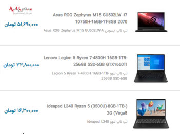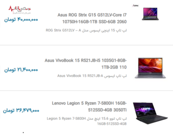قیمت روز لپ تاپ ایسوس و لنوو امروز در بازار تهران ۱۳ آذر ۱۴۰۰