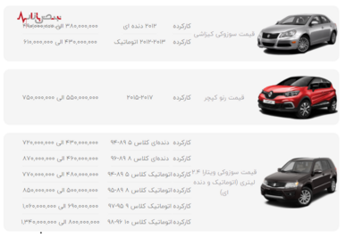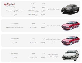 قیمت محصولات ایران خودرو مانند بسیاری دیگر از محصولات خودروسازان در ایران همواره در نوسان است. به خصوص در زمان ارائه پیش فروش و طرحهای ویژه توسط این شرکت، قیمت روز محصولات ایران خودرو به یکی از اخبار داغ هفتگی تبدیل میشود. در این آشفته بازار، افرادی که قصد استفاده از خودروهای داخلی به ویژه مدلهای کارکرده و دست دوم را دارند، باید از قیمت فعلا ایران خودرو مطلع باشند. آخرین لیست قیمت محصولات ایران خودرو را همیشه میتوانید در سایت نبض بازار مشاهده کنید.