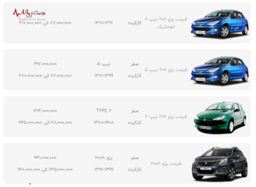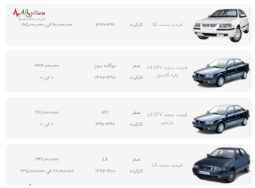 قیمت خودروهای ایران خودرو در بازار امروز تهران ۱۳ آذر ۱۴۰۰