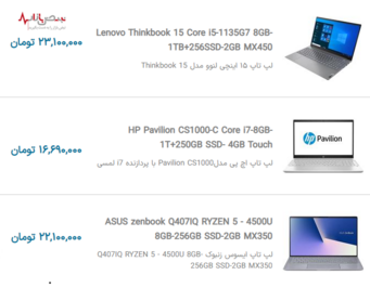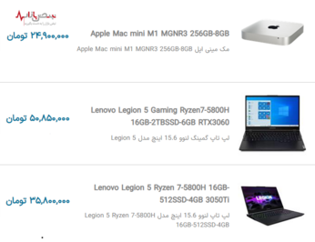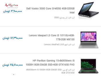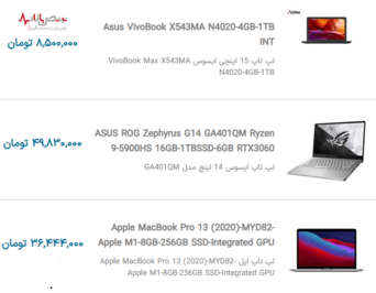 لیست قیمت به روز لپ تاپ‌های محبوب بازار سه شنبه ۱۶ آذر ۱۴۰۰