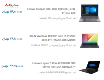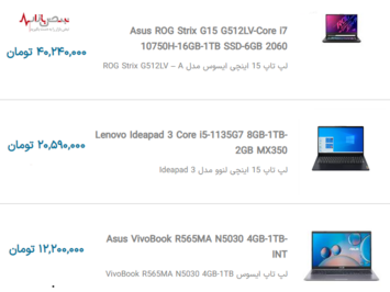 قیمت روز لپ تاپ ایسوس و لنوو امروز در بازار تهران ۱۶ آذر ۱۴۰۰