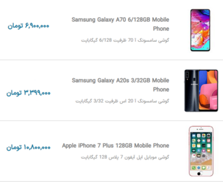 قیمت امروز گوشی