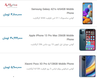 قیمت گوشی‌های موبایل جدید در بازار امروز تهران ۱۳ آذر ۱۴۰۰