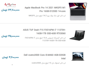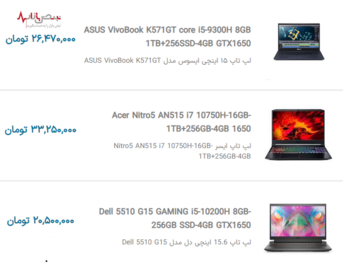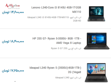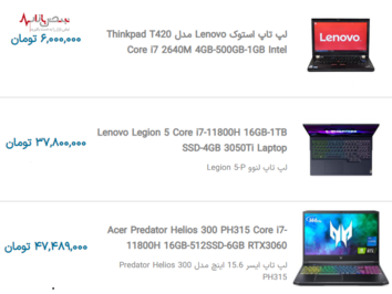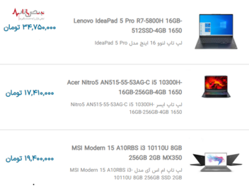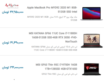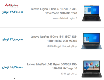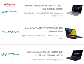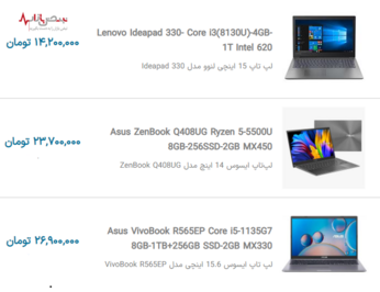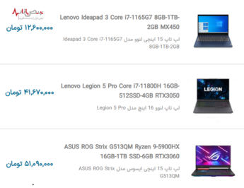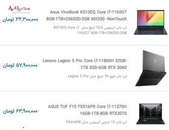 لیست قیمت به روز لپ تاپهای محبوب بازار یکشنبه ۲۱ آذر ۱۴۰۰