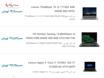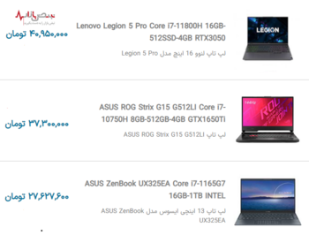 لیست قیمت به روز لپ تاپهای محبوب بازار چهارشنبه ۲۴ آذر ۱۴۰۰