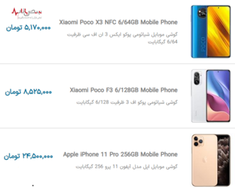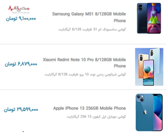 قیمت گوشیهای موبایل جدید در بازار امروز تهران ۲۶ آذر ۱۴۰۰