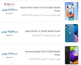 قیمت امروز گوشی
