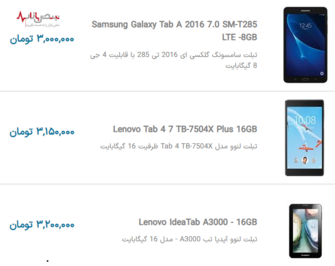 در لیست زیر می‌توانید قیمت بهترین تبلت‌ها را مشاهده کنید و امیدواریم بتوانید تبلت مناسب خود را پیدا کنید.