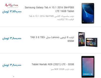 قیمت روز تبلت‌های اقتصادی در نبض بازار ایران ۲۶ آذر ۱۴۰۰