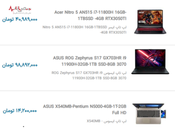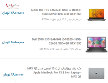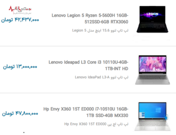 لیست قیمت به روز لپ تاپهای محبوب بازار شنبه ۲۷ آذر ۱۴۰۰
