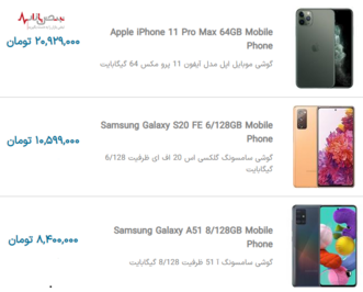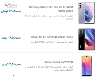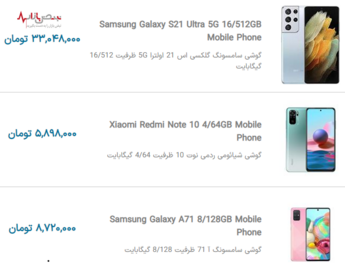 قیمت گوشیهای موبایل جدید در بازار امروز تهران ۲۷ آذر ۱۴۰۰