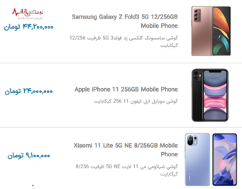 قیمت گوشیهای جدید موبایل در بازار امروز تهران ۲۷ آذر ۱۴۰۰