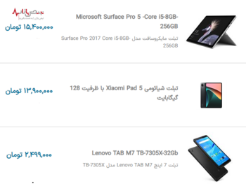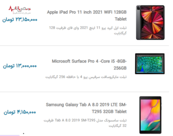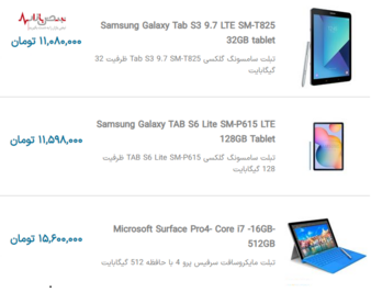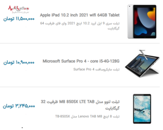در لیست زیر میتوانید قیمت بهترین تبلتها را مشاهده کنید و امیدواریم بتوانید تبلت مناسب خود را پیدا کنید.