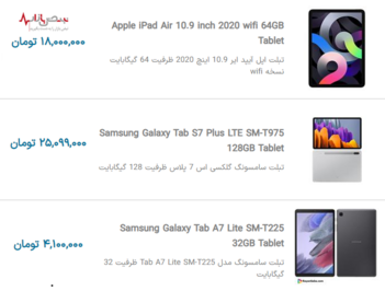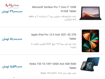 قیمت روز تبلتهای اقتصادی در نبض بازار ایران ۲۸ آذر ۱۴۰۰