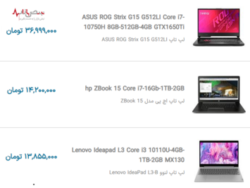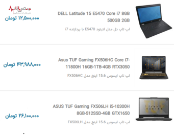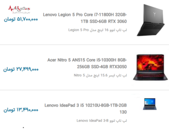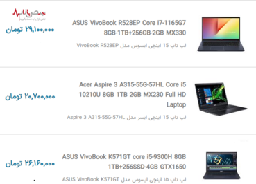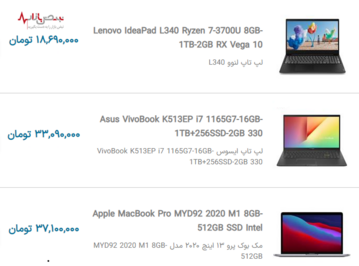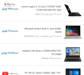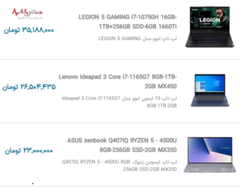 لیست قیمت به روز لپ تاپهای محبوب بازار دوشنبه ۲۹ آذر ۱۴۰۰