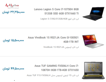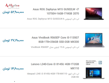 قیمت روز لپ تاپ ایسوس و لنوو امروز در بازار تهران ۲۹ آذر ۱۴۰۰