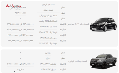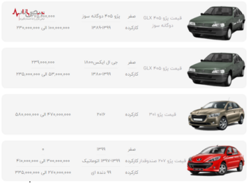 قیمت پر فروش‌ترین محصولات ایران خودرو در بازار امروز تهران ۲۹ آذر ۱۴۰۰
