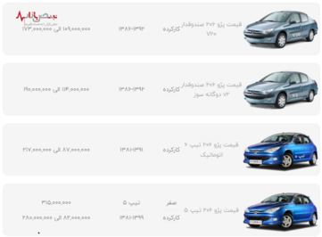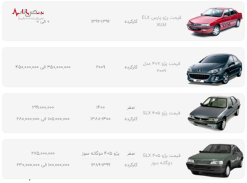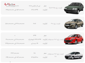 قیمت محصولات ایران خودرو در بازار امروز تهران ۳۰ آذر ۱۴۰۰