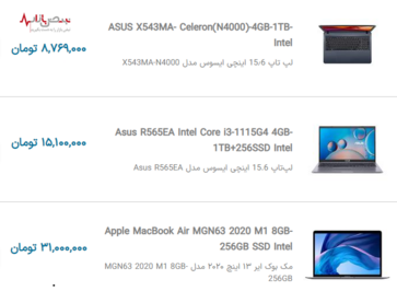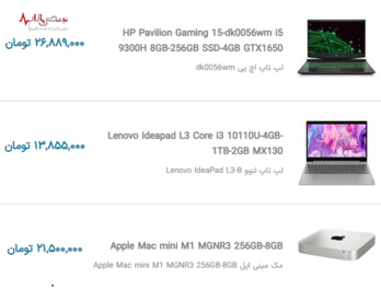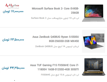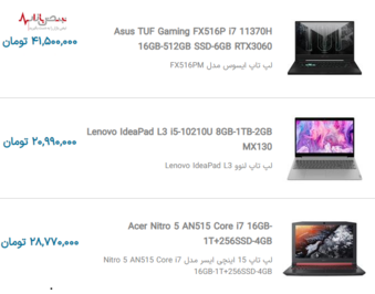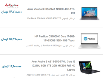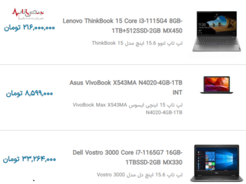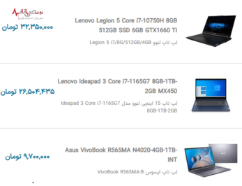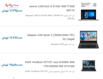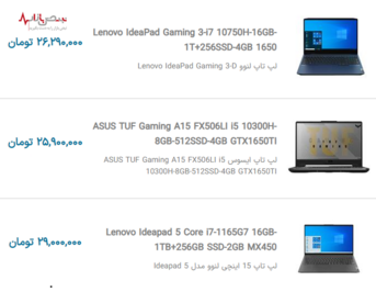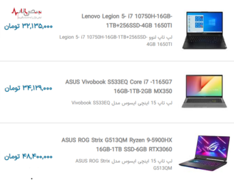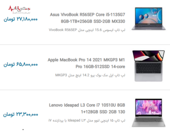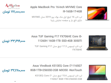لیست قیمت به روز لپ تاپهای محبوب بازار جمعه ۳ دی ۱۴۰۰