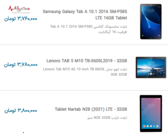 در لیست زیر می‌توانید قیمت بهترین تبلت‌ها را مشاهده کنید و امیدواریم بتوانید تبلت مناسب خود را پیدا کنید.