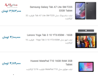 قیمت روز تبلت‌های اقتصادی در نبض بازار ایران ۱۵ آذر ۱۴۰۰