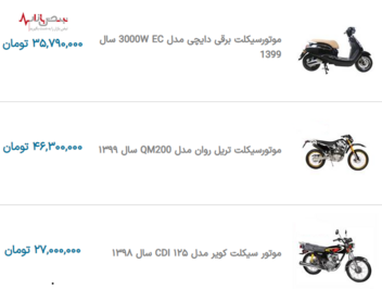 قیمت به روز موتورسیکلت در نبض بازار ایران ۴ دی ۱۴۰۰