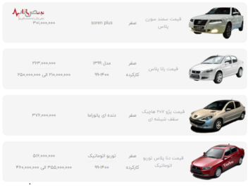قیمت محصولات ایران خودرو در بازار امروز تهران ۸ دی ۱۴۰۰