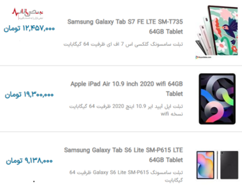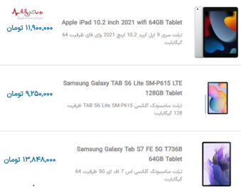 قیمت روز تبلتهای اقتصادی در نبض بازار ایران ۱۴ دی۱۴۰۰