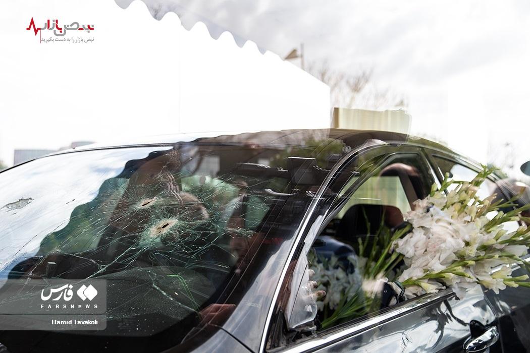 خودروی مورد هدف قرار گرفته شهید محسن فخری‌زاده در باغ موزه دفاع مقدس رونمایی شد.