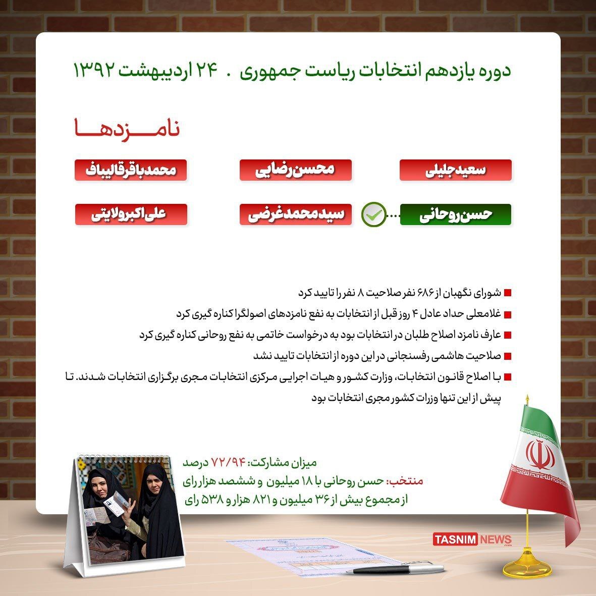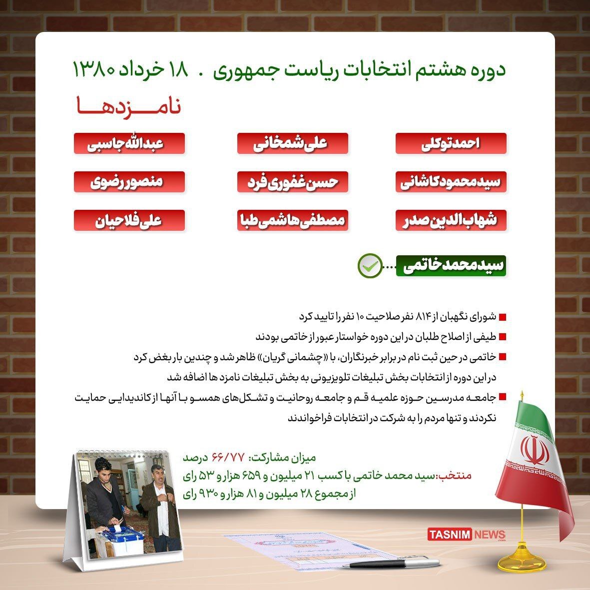 تصاویر/ مروری بر تاریخچه انتخابات ریاست جمهوری از سال ۷۶ تاکنون+ اسامی