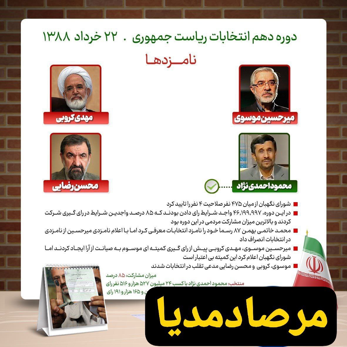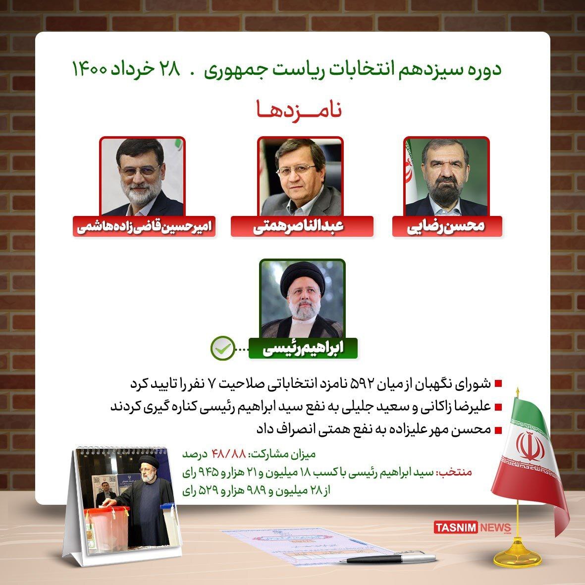 تاریخچه میزان مشارکت و منتخبین انتخابات ریاستجمهوری طی ۲۰ سال اخیر منتشر شد.