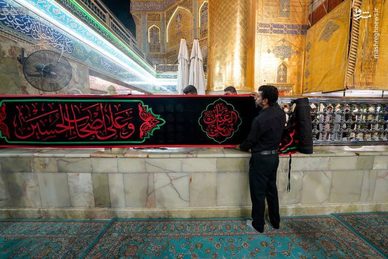 در آستانه ماه محرم الحرام حرم امیرالمومنین سیاه پوش شد.