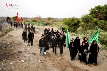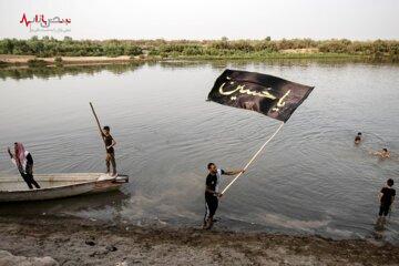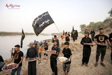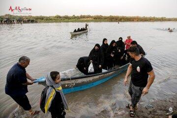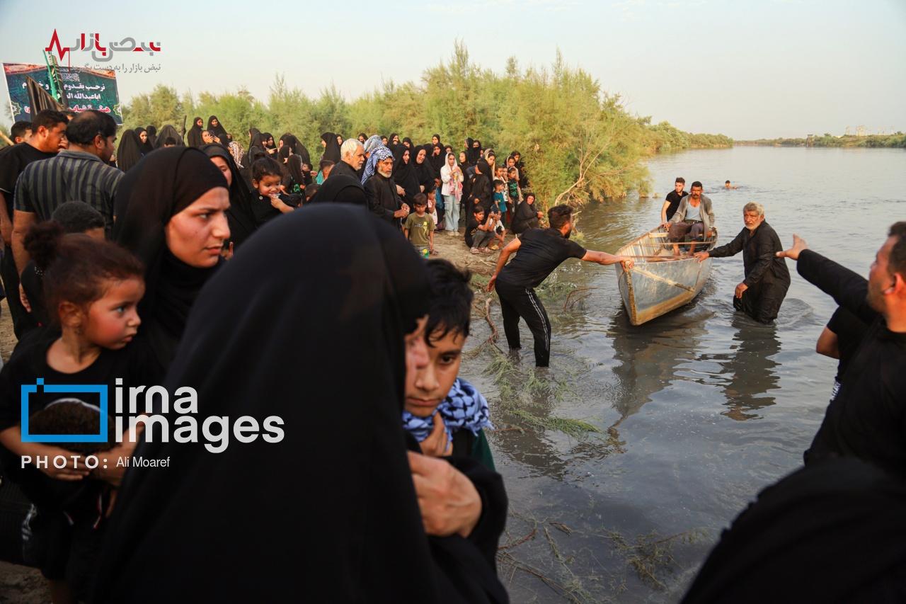 کاروان زوار کربلا پس از چند ساعت پیاده روی از شوشتر در مسیر شعیبیه به رودخانه دز می رسند. قایق های اهالی روستای «خلیفه حیدر» در کنار ساحلِ رود در انتظارند تا زوار را از رودخانه عبور دهند.