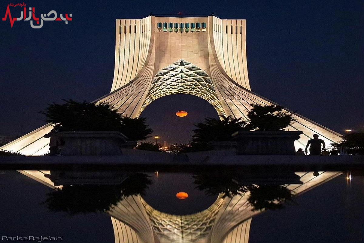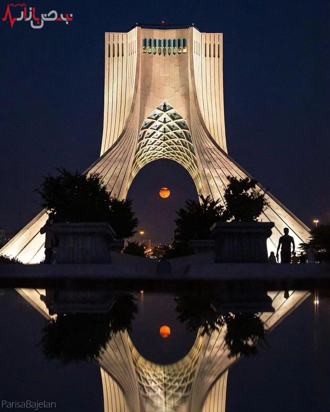 نمایی زیبا از برج آزادی و ماه کامل را در ادامه ببینید.