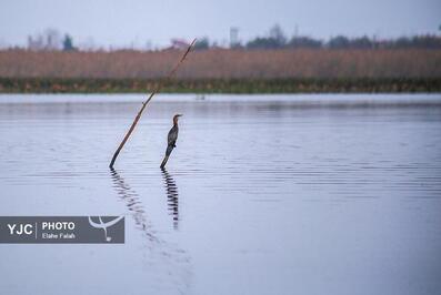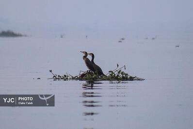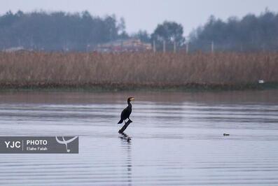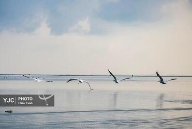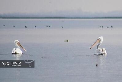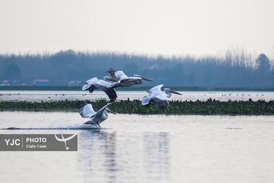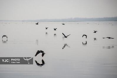 نمای بینظیر تالاب انزلی با مهمانان زمستانی