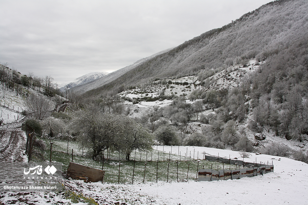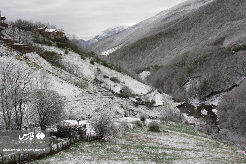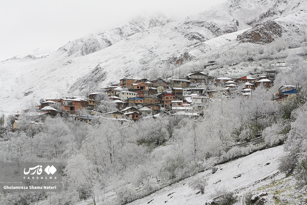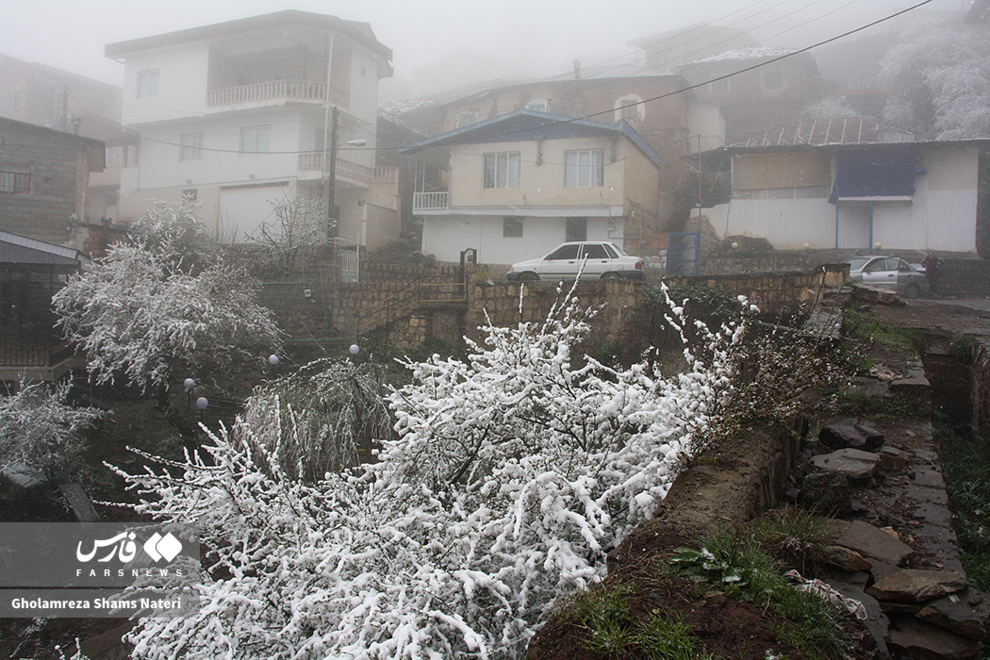 زیبایی بی نظیر برف بهاری در روستای ناتر چالوس