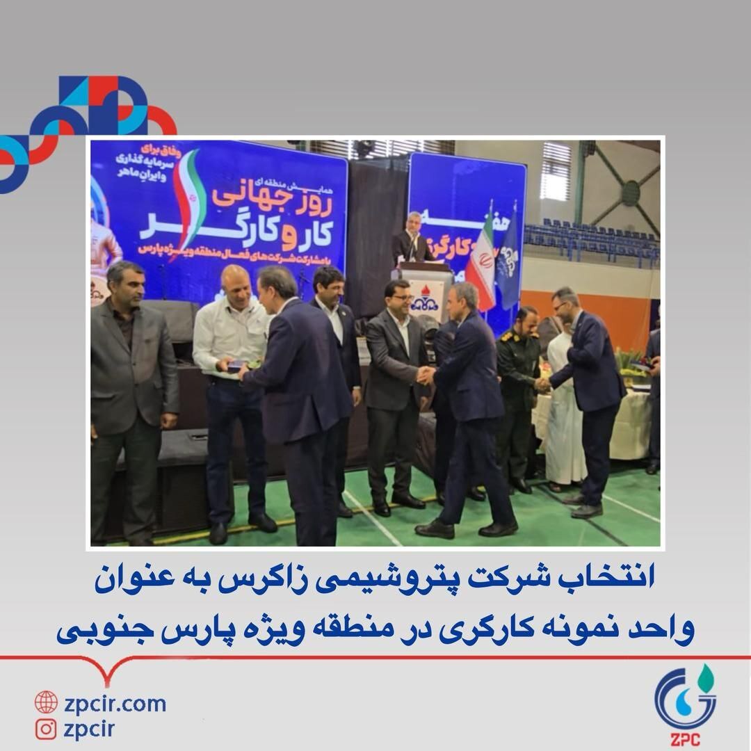 انتخاب شرکت پتروشیمی زاگرس به عنوانواحد نمونه کارگری در منطقه ویژه پارس جنوبی