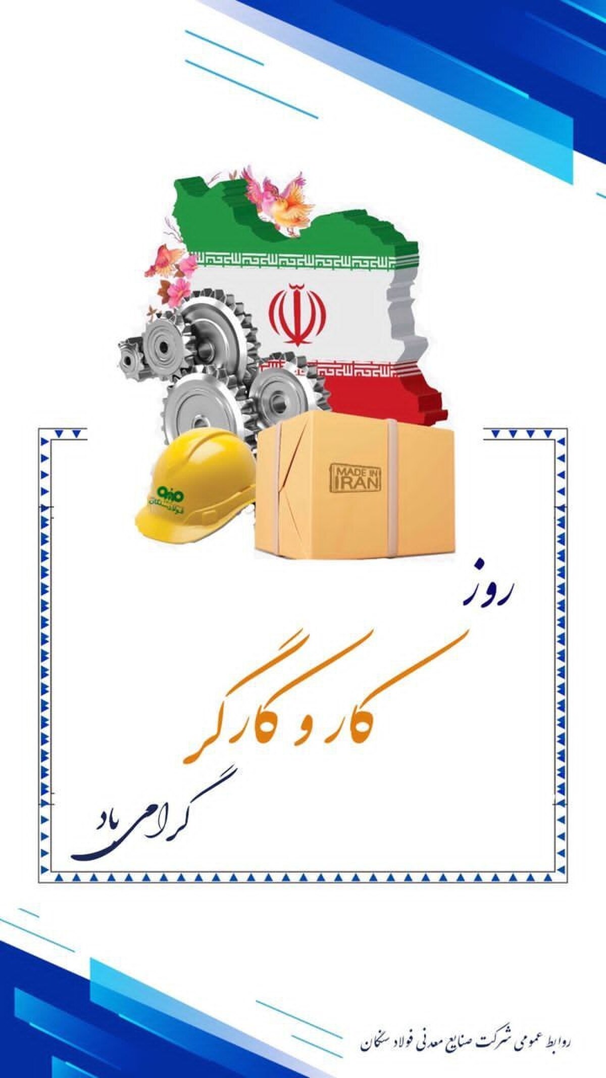 اینجانب، ضمن تبریک روز کار و کارگر  خدمت قشر پرتلاش کارگران به خصوص همکاران عزیز مجموعه فولاد سنگان ، از همت جانانه ایشان ، در عرصه تولید تقدیر و تشکر نموده و از درگاه خداوند منان، سرافرازی و  پیشرفت میهن پرافتخار و صحت و بهروزی تمامی ملت شریف ایران اسلامی به ویژه کارگران محترم را مسألت می نمایم.