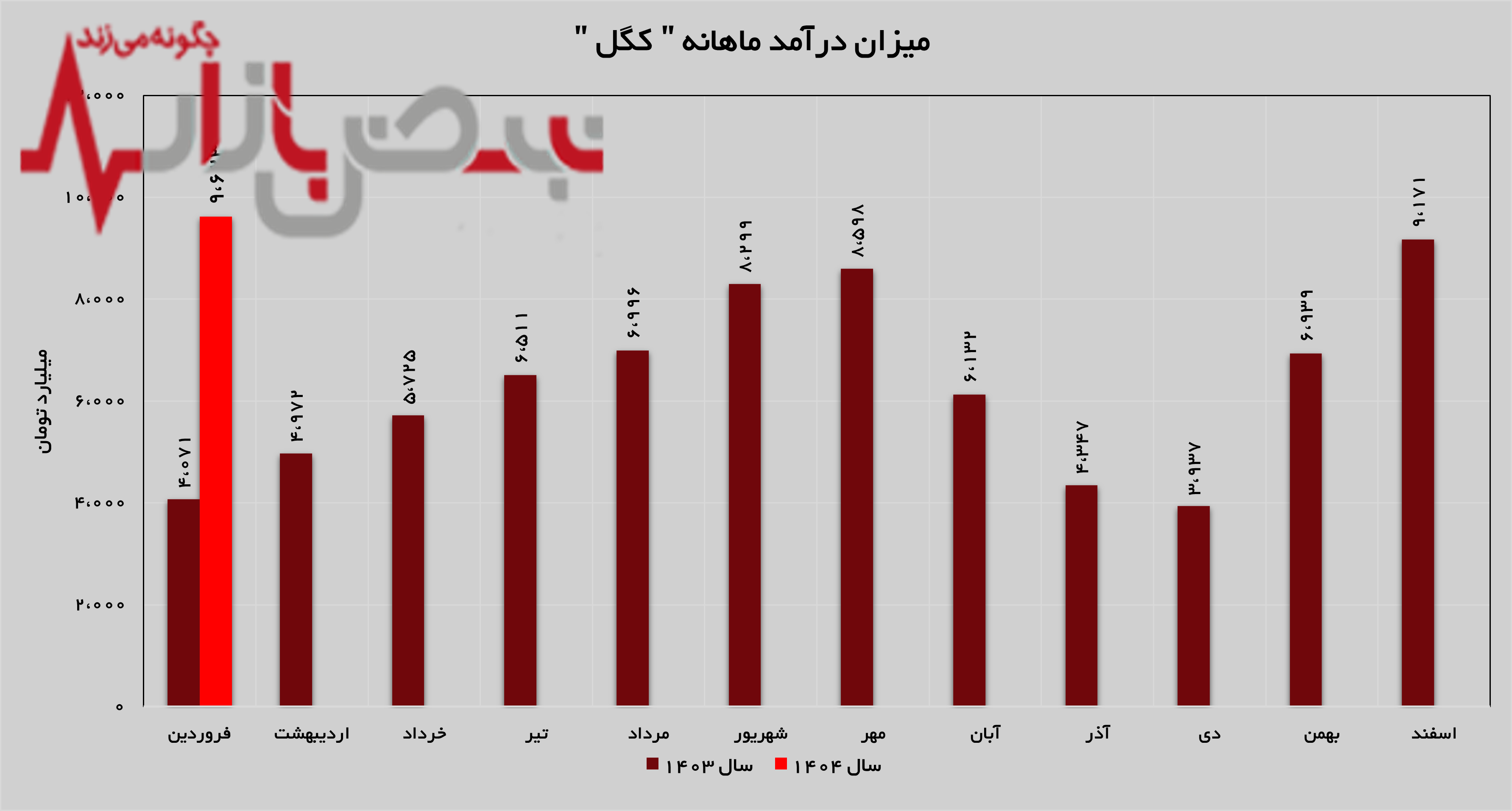 درآمد ماهانه "کگل" در این دوره یک‌ماهه، بالاتر از میانگین درآمد ۱۲ ماهه سال ۱۴۰۳ بوده و به میزان ۳ هزار و ۳۱۵ میلیارد تومان بالاتر از میانگین درآمد ۱۲ماهه سال ۱۴۰۳ ثبت شده است.