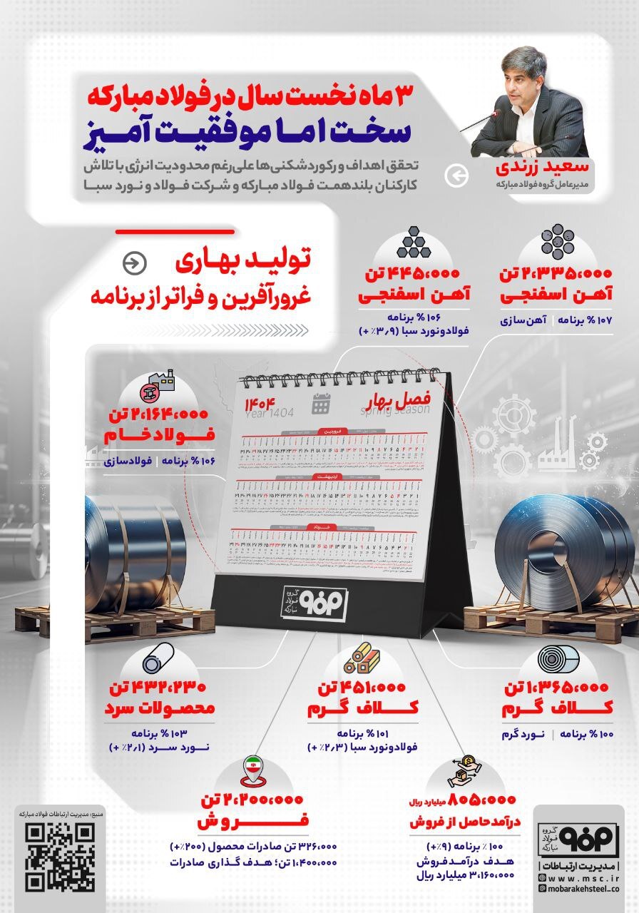 اینفوگرافی / ۳ ماه نخست سال در فولاد مبارکه؛ سخت اما موفقیت آمیز روابط عمومی شرکت فولاد مبارکه اینفوگرافی زیر را با عنوان «۳ ماه نخست سال در فولاد مبارکه؛ سخت اما موفقیت آمیز» منتشر کرده است.