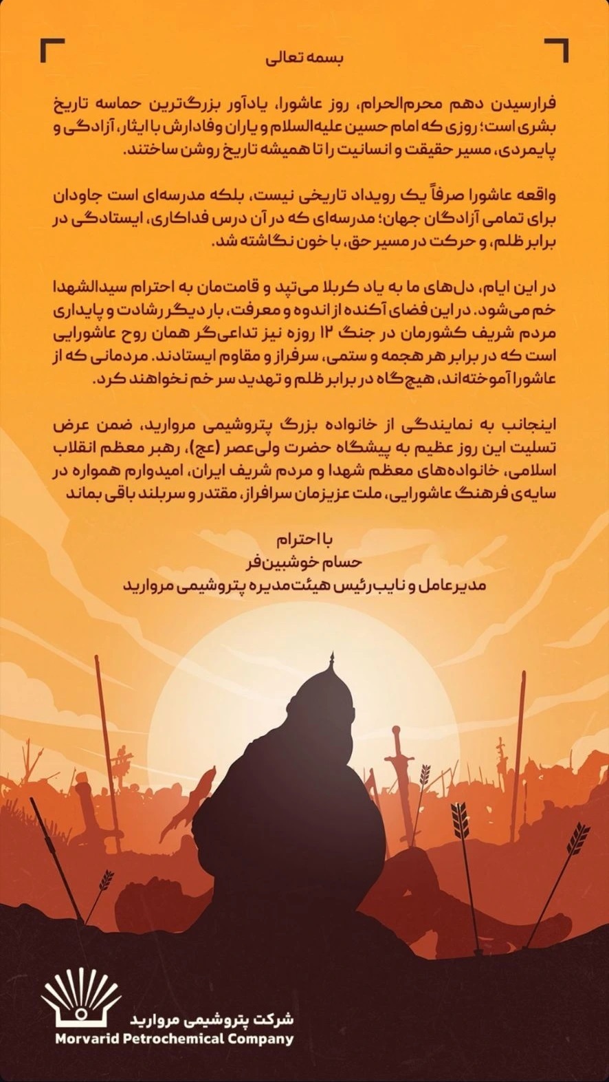 پیام تسلیت مدیرعامل پتروشیمی مروارید به مناسبت فرا رسیدن ایام تاسوعا و عاشورای حسینی