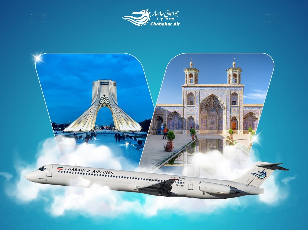 پروازهای هفتگی هواپیمایی چابهار در مسیر تهران - شیراز - تهران در دو کلاس پروازی اکونومی و تجاری انجام می شود.