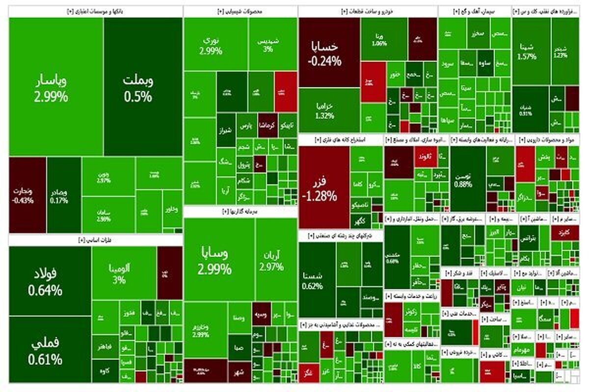 در میان نمادهای بزرگ بازار، صنایع پتروشیمی خلیج فارس (فارس) با تأثیر مثبت بیش از ۳ هزار واحد بیشترین نقش را در رشد شاخص کل ایفا کرد. پس از آن، نمادهای فملی، پارسان، نوری و فولاد نیز بهترتیب بیشترین تأثیرات مثبت را داشتند.